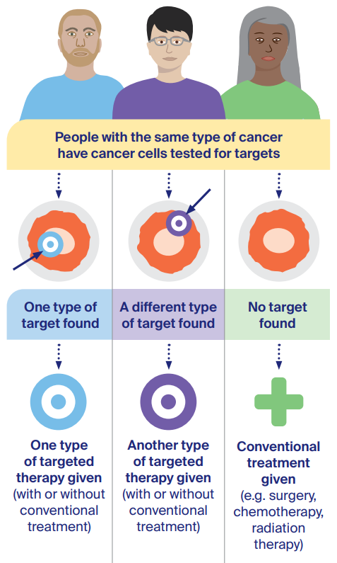 For some types of cancer, your doctor will test a tissue sample to see if the cells contain a particular target that is allowing the cancer to grow. People with the same cancer type may be offered different treatments based on their test results.